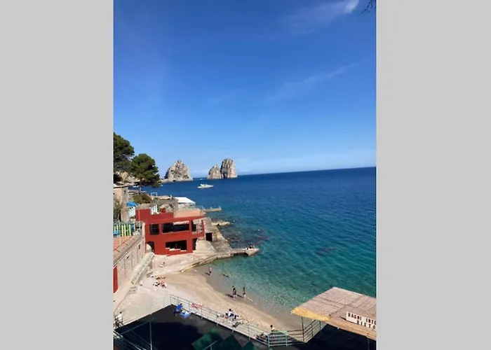 Questo stabilimento si trova a 1 km dal centro di Capri e nelle vicinanze dei Giardini di Augusto. La spiaggia più vicina è a una distanza di intorno 15 minuti a piedi. Nelle vicinanze c'è Longano da Tarantino che dista 5 minuti a piedi da questa villa.